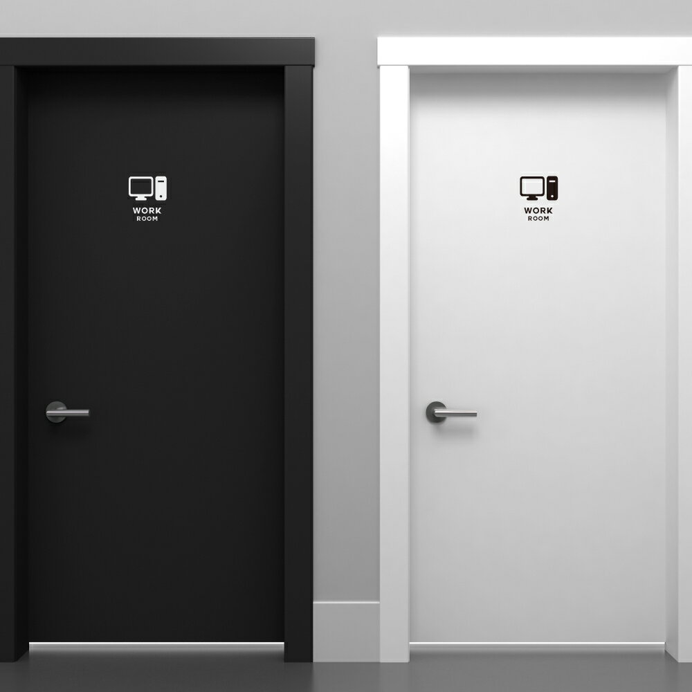 仕事部屋 2/カラー・白(シルバーに変更可) (ツヤ消しマット)再剥離タイプ賃貸・新築可 サイン ウォールステッカー トイレ マナー 警告 シール ステッカー カッティング シンプル おしゃれ アイコン 転写式 壁シール メール便 送料無料