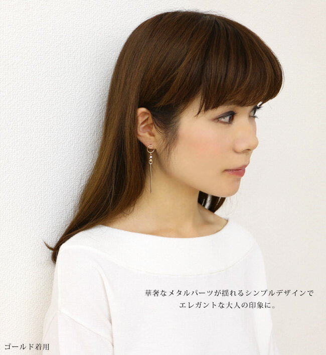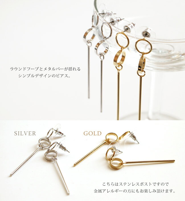 商品説明小さなフープとバーのメタルパーツが揺れるピアス。